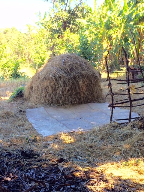 Over a period of several hours Shawn and I helped pitchfork a huge pile of straw after the rice grain was removed. The result of all this hard, manual work is the pile of rice you see.