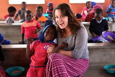 Jenn Newingham surrounded by the sweet faces of the CP sponsored children in Kenya last summer.