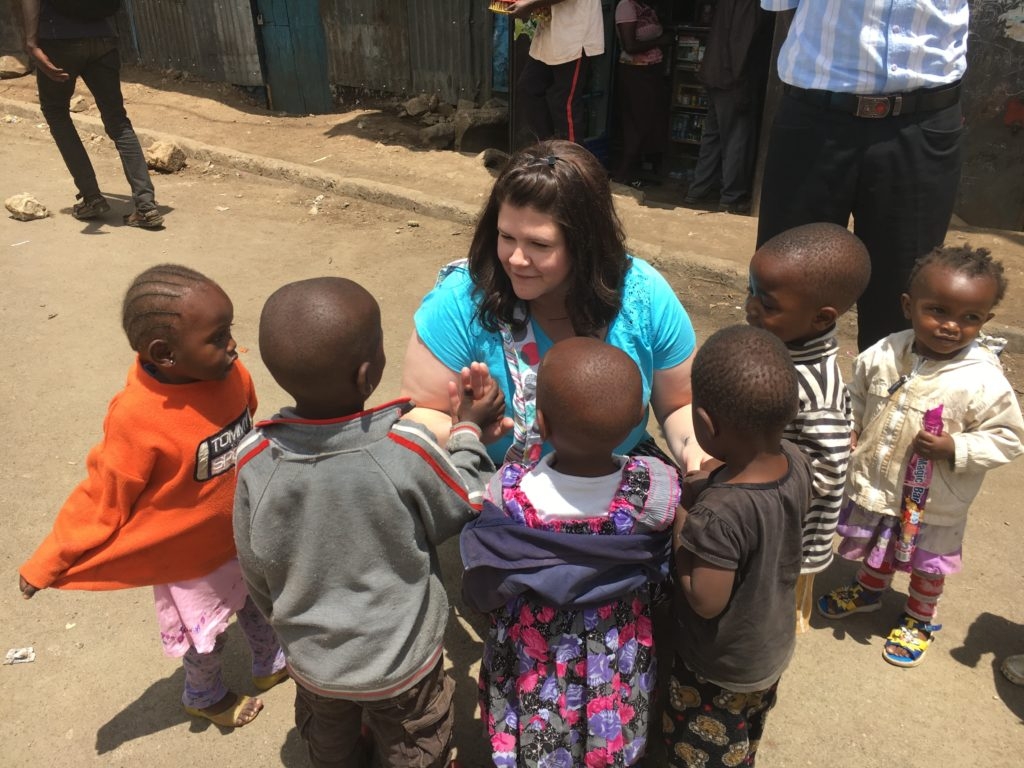 Jenn Newingham surrounded by the sweet faces of the CP sponsored children in Kenya last summer.