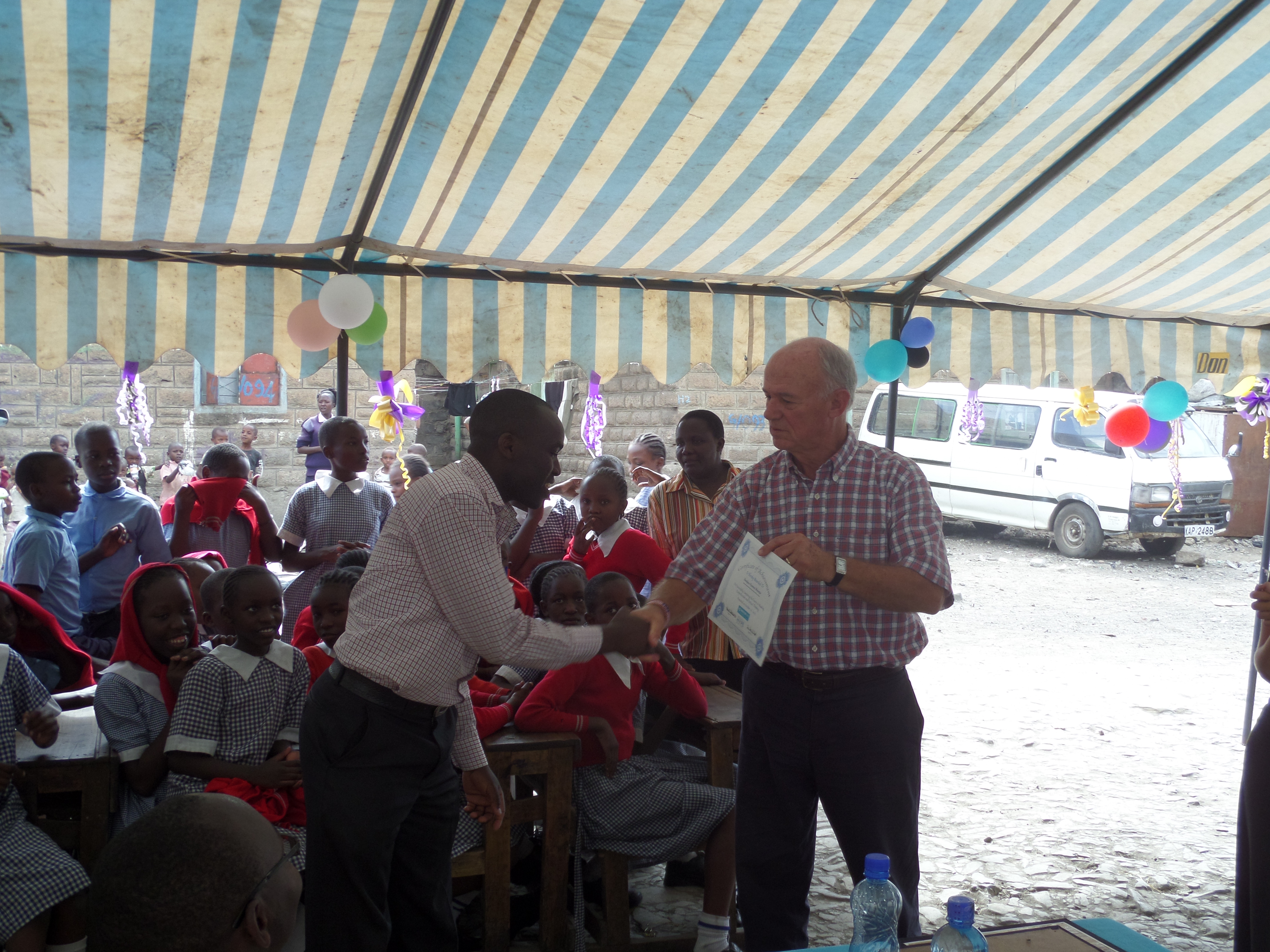 - A Madoya school teacher from Missions of Hope International (MOHI) in Nairobi, Kenya receives a certificate of completion presented by the CPCC short-term mission team following a workshop on reading comprehension.