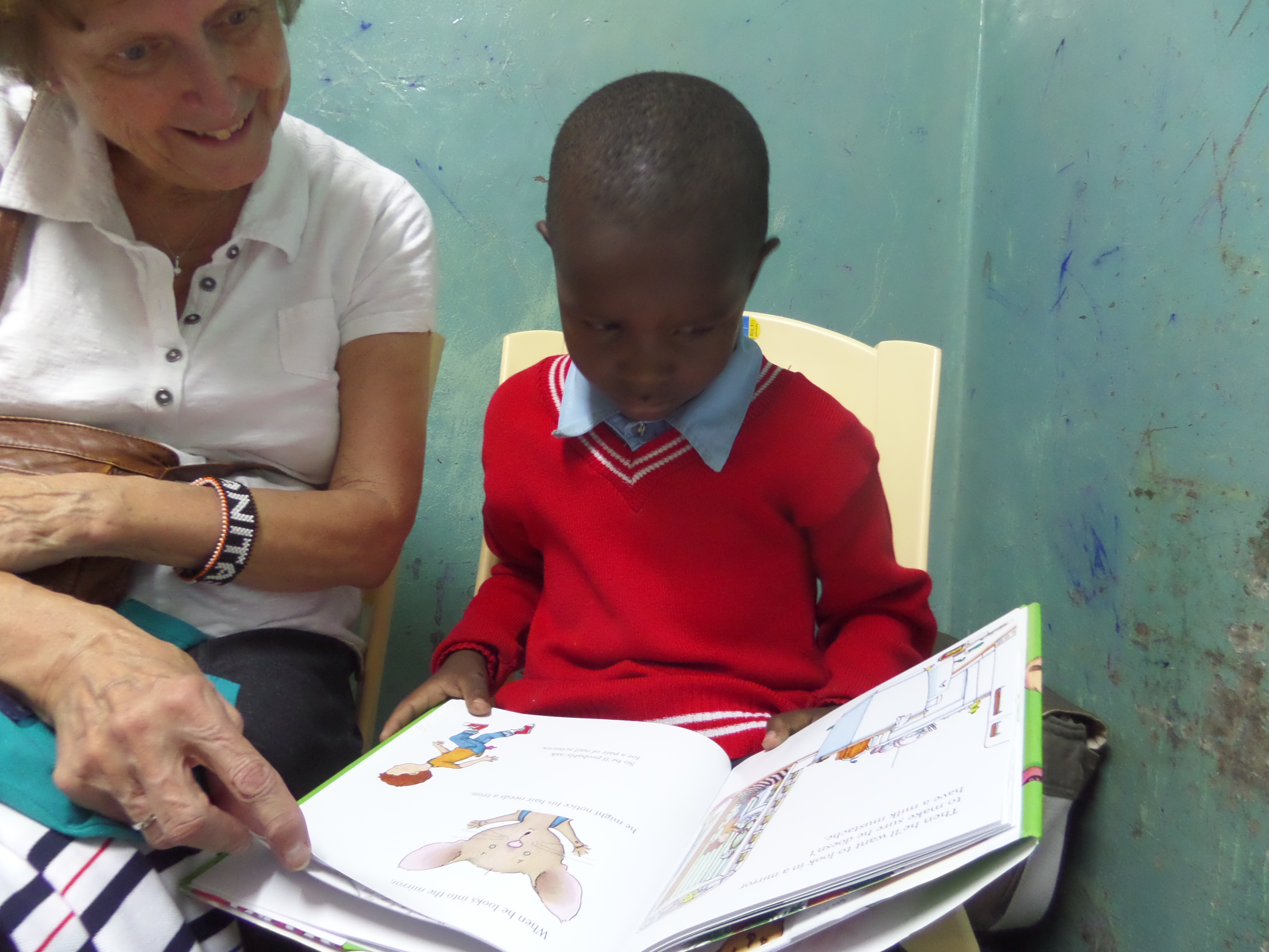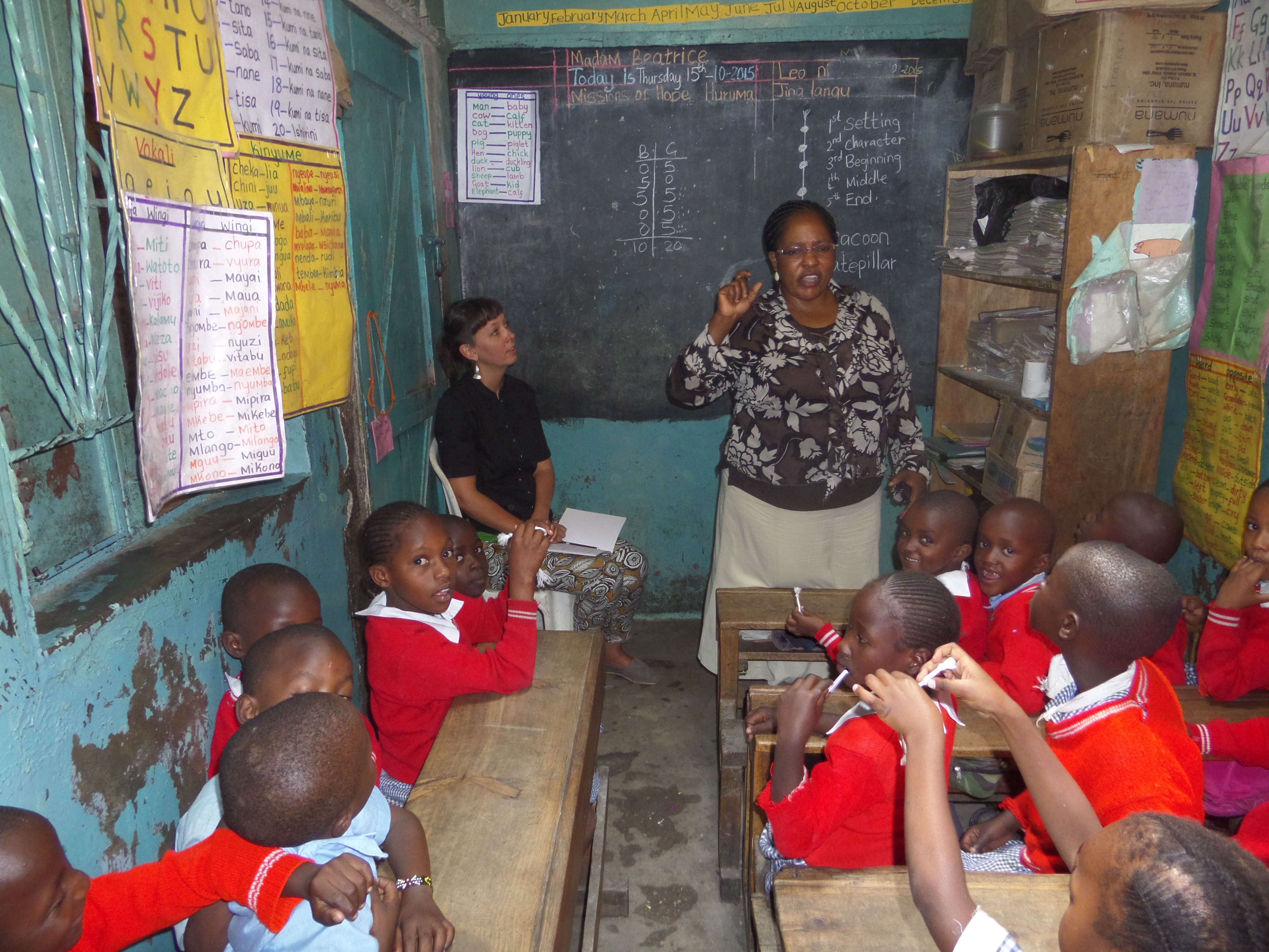 - Alison Emery, CMF missionary with Missions of Hope International and CPCC partner in Kenya, observes a Madoya school teacher reading a primary-level book to her class as part of developing story comprehension.