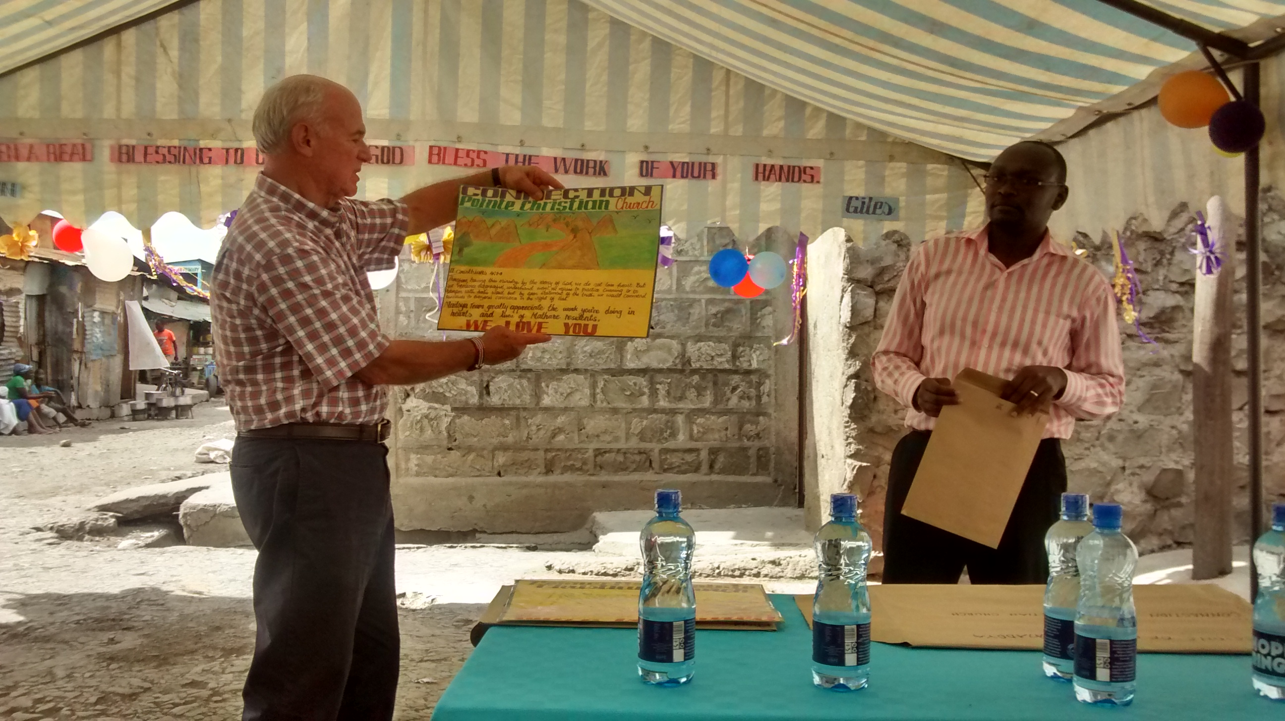 - Madoya school teachers receive a map showing a connection between Nairobi, Kenya, and Brownsburg to commemorate CPCC’s partnership with the MOHI school. The map included the text of Ephesians 1:16 reminding the teachers of the constant prayers for them by the CPCC short-term team.
