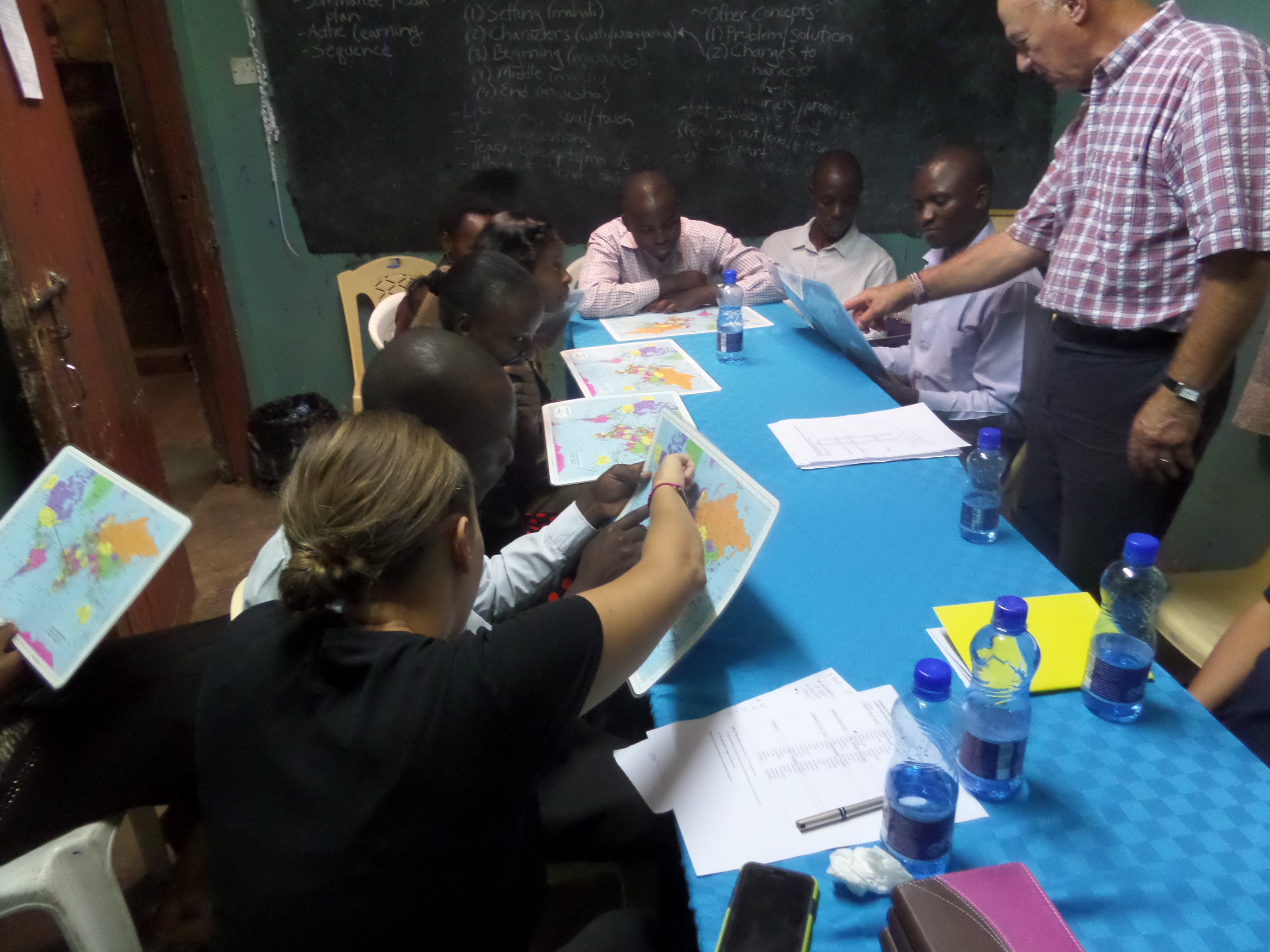 - Giles Emery, CMF missionary with Missions of Hope International and CPCC partner in Kenya, discusses various aspects of reading comprehension with Madoya school teachers during a workshop for the teachers by the CPCC short-term team.