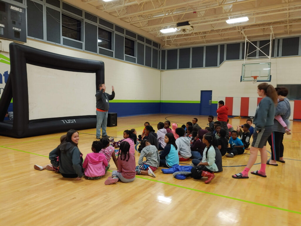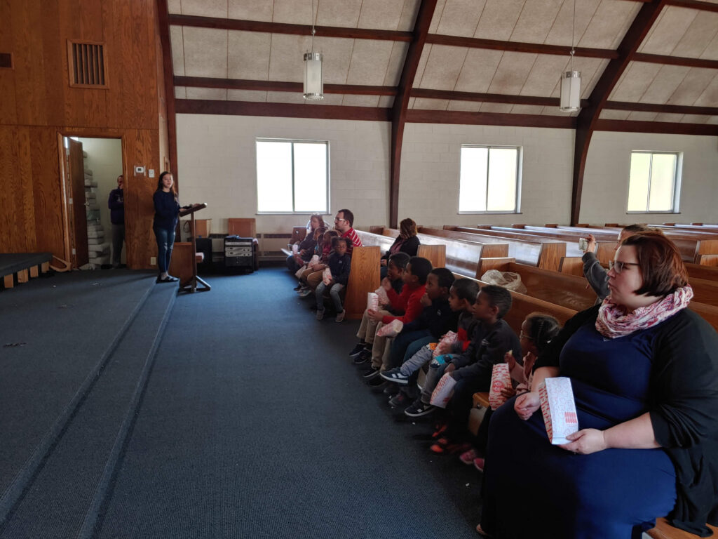 On the first day, our group hosted a movie night for the elementary aged students and toddlers.