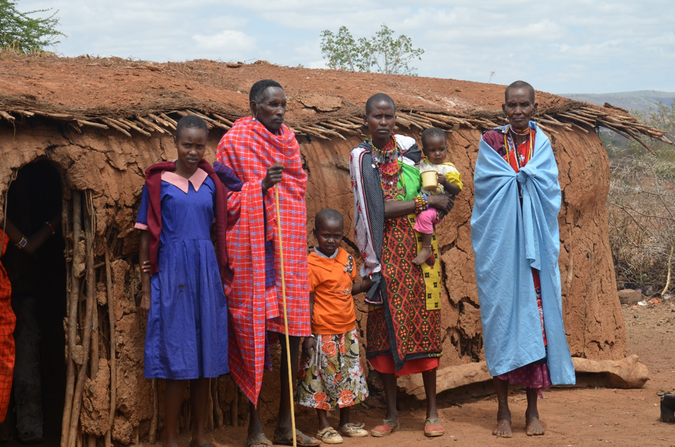 A rough, four-wheeling, 90-minute drive to a remote village took us to see Teresiah’s family. You will remember her from Oloomirani School yesterday. They welcomed us with warm greetings and served us tea in their hut. (pictured: father, mother, grandmother and 3 siblings)